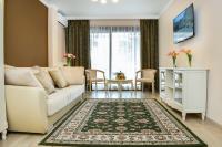 туалет, умывальник, душ, двуспальная кровать, диван, телевизор, холодильник, чайный набор, кондиционер, фен, балкон с плетеной мебелью. Вид на море и ландшафтный парк. Wi-Fi
